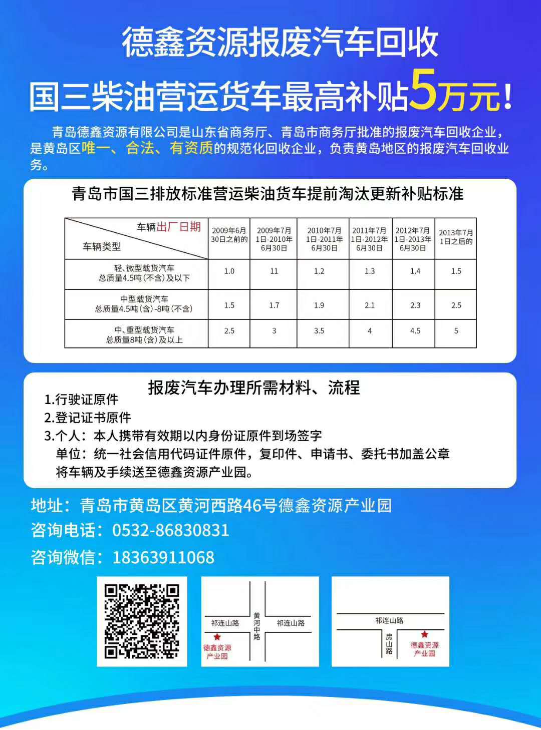 青島德鑫資源報廢汽車回收補貼